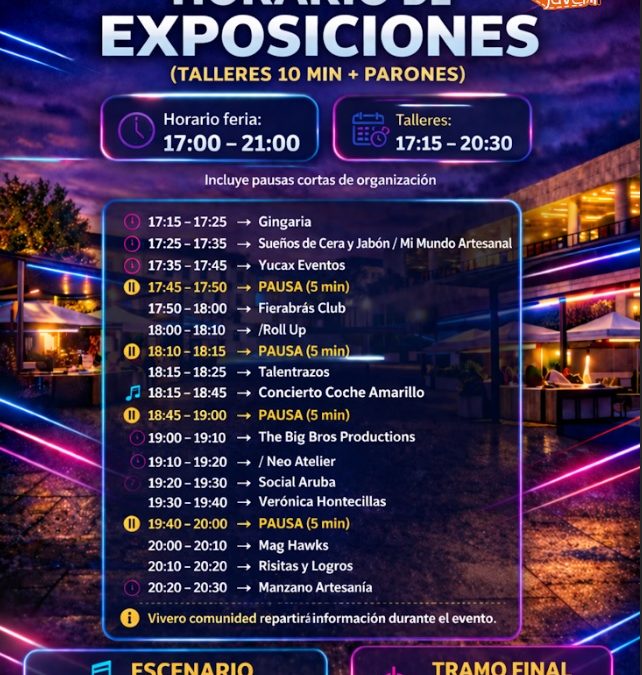 , donde se incluirán las franjas horarias de apertura, dinamizaciones, charlas y actividades especiales previstas para la jornada.
